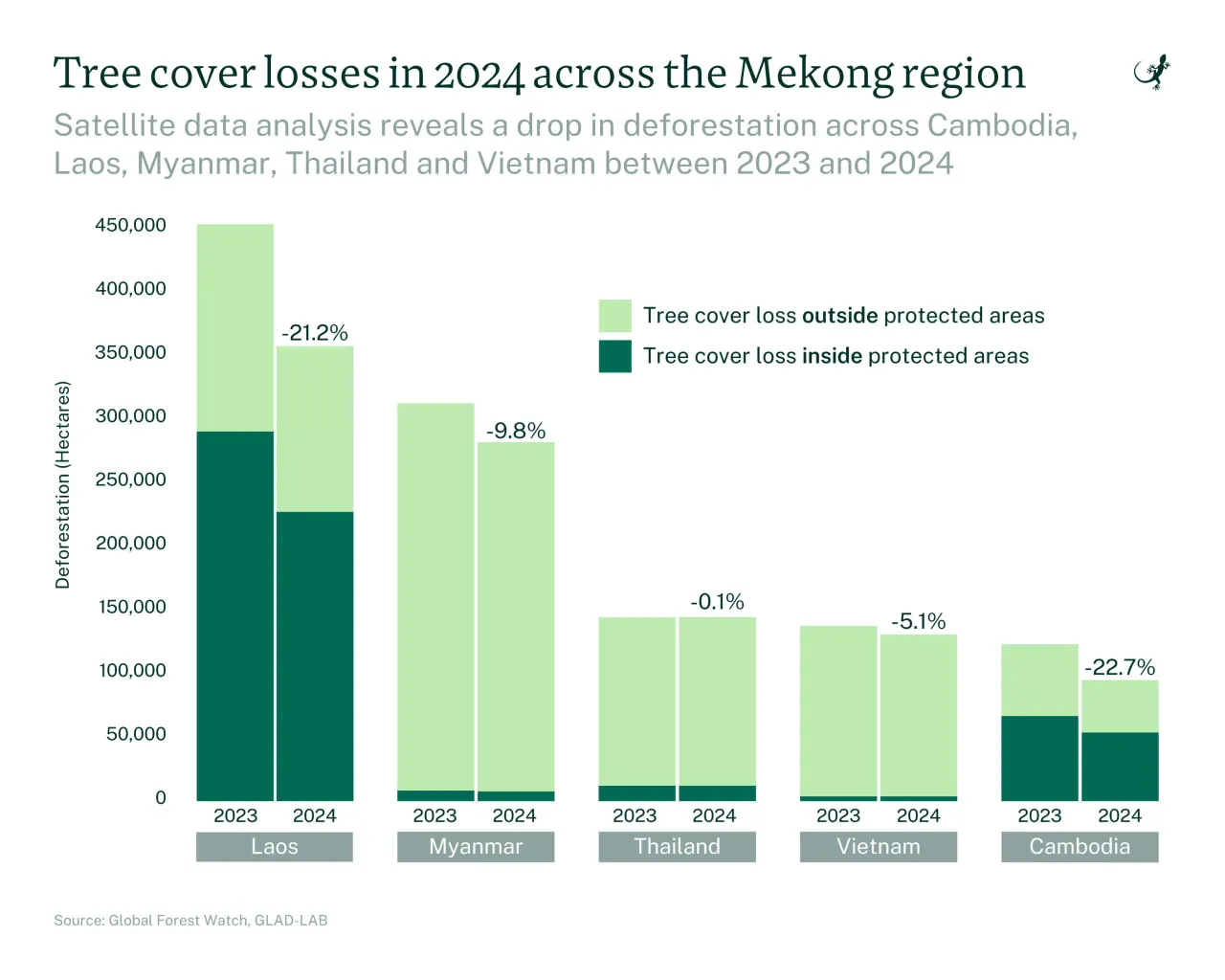 Thu hẹp diện tích rừng tại tiểu vùng sông Mekong năm 2024 và tác động tới các khu bảo tồn