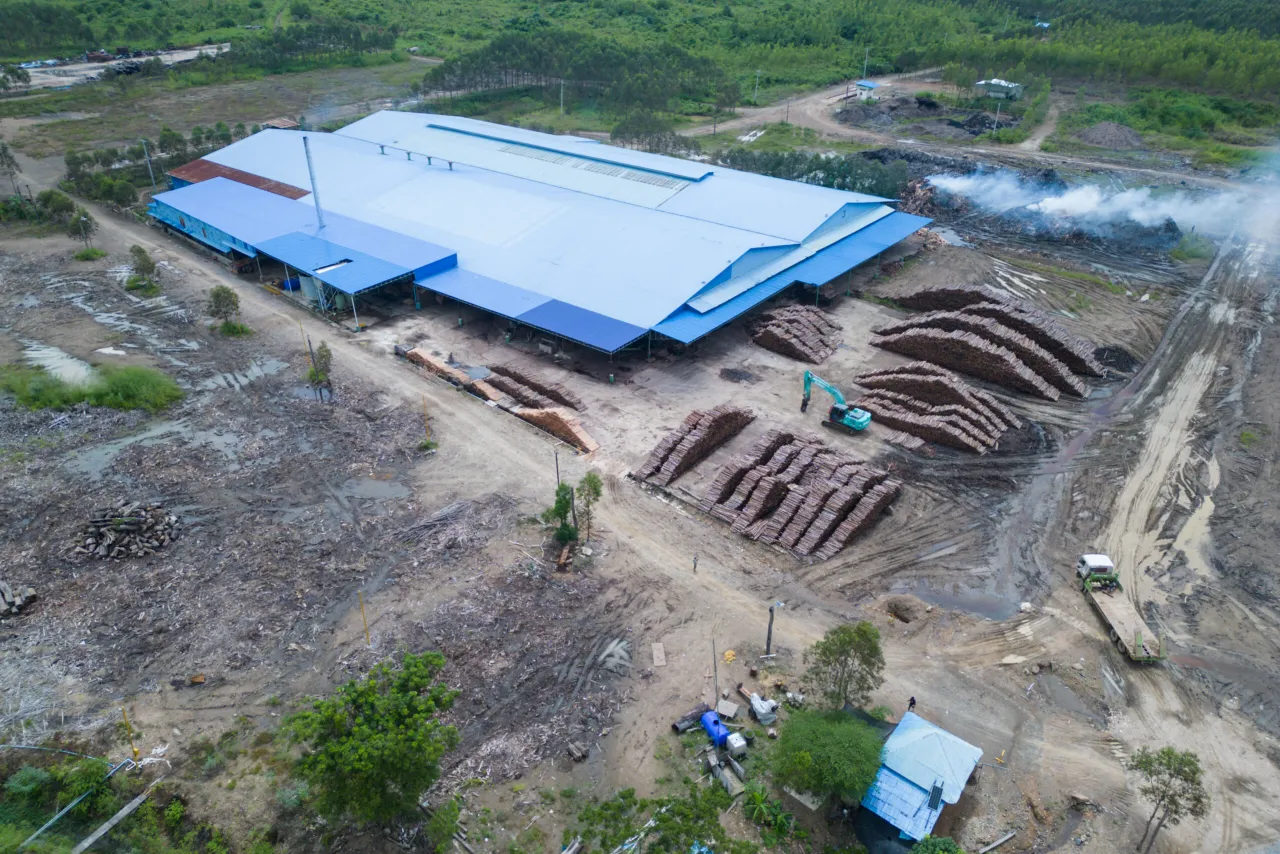 Hình 2. Công ty Holy Plantation (trước đây có tên là Think Biotech) đang vận hành một cơ sở cưa xẻ gỗ trong khu vực nhượng quyền của mình, giáp ranh Khu bảo tồn động vật hoang dã Prey Lang. Doanh nghiệp này đã nhiều lần bị cáo buộc liên quan đến hoạt động “rửa” gỗ khai thác bất hợp pháp.
