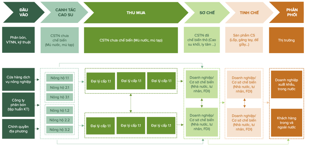 Theo báo cáo của Forest Trends, nông hộ chính là lực lượng sản xuất chủ lực trong các ngành cà phê, cao su và gỗ rừng trồng. Năm 2023, diện tích cà phê cả nước khoảng 720.000 ha thì nông hộ nắm giữ tới 97% diện tích với khoảng 700.000 hộ tham gia canh tác. Ở ngành cao su, có khoảng 264.000 nông hộ quản lý 490.000 ha – chiếm 54% tổng diện tích cao su cả nước. Đối với gỗ rừng trồng, khoảng 1,1 triệu hộ sở hữu 1,82 triệu ha rừng trồng, đóng góp 60% nguồn cung gỗ. Các con số này cho thấy nông hộ đang quyết định nguồn nguyên liệu đầu vào cho các doanh nghiệp chế biến và xuất khẩu.